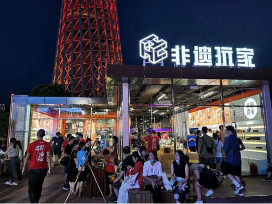 非遗玩家聚集了一批非遗二代传承人,包括榄雕、西关打铜、广彩、通草画、剪纸、饼印、红木宫灯、岭南古琴、粤语说书9项非遗项目。他们用年轻人的方式“潮玩非遗”,让老物件焕发新活力。在非遗玩家的现场,市民游客可以看到广彩、广绣、榄雕、打铜、饼印等的非遗传统技艺的现场展示,同时也有非遗文创产品的销售,结合非遗传承人的传统手艺和年轻人喜欢的新潮元素,让游客在消费体验中也学习到许多非遗知识。