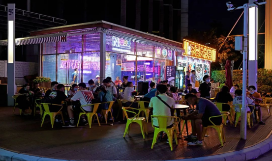 坐落潮墟内的赏点特别店“不耍大排档”是潮人聚集地,整个店面从里到外都突出了“不耍大牌”的个性主张,传达不造作的年轻气象。室内的设计融合了港式霓虹元素,粉红色的灯牌配上潮流的slogan【万物皆可耍】,是潮人不可错过的打卡点。在不耍大排档,市民游客可以品尝到正宗的粤式点心,虾饺、干蒸烧卖、排骨凤爪一样也不少,而作为赏点点心的兄弟品牌,除了传统的粤式点心之外,还为市民游客提供了粤式烧烤,全新的饮食体验搭配闪耀的广州塔夜景,店长还不定期邀请演唱团队来表演,让大家能够一边享受美食,一边听着歌声欣赏夜景。