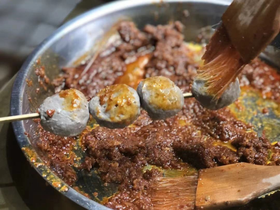 潮汕以美食闻名,在潮墟就能品尝到潮汕牛肉丸、红桃粿,