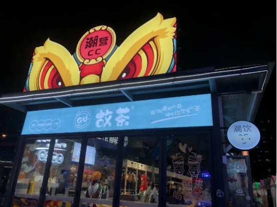 以醒狮作为形象物的潮营CC空间,打造潮饮、潮物、潮作、潮音,是一个醒狮文化主题空间,包含潮营故茶、醒狮国风潮牌文创、醒狮主题式清吧,将潮流与文艺“一网打尽”。